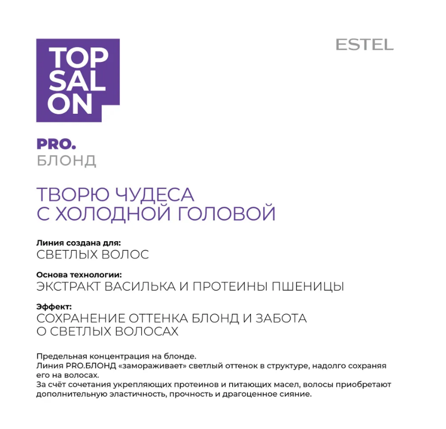 ДЕЛИКАТНЫЙ ШАМПУНЬ ESTEL TOP SALON PRO.БЛОНД